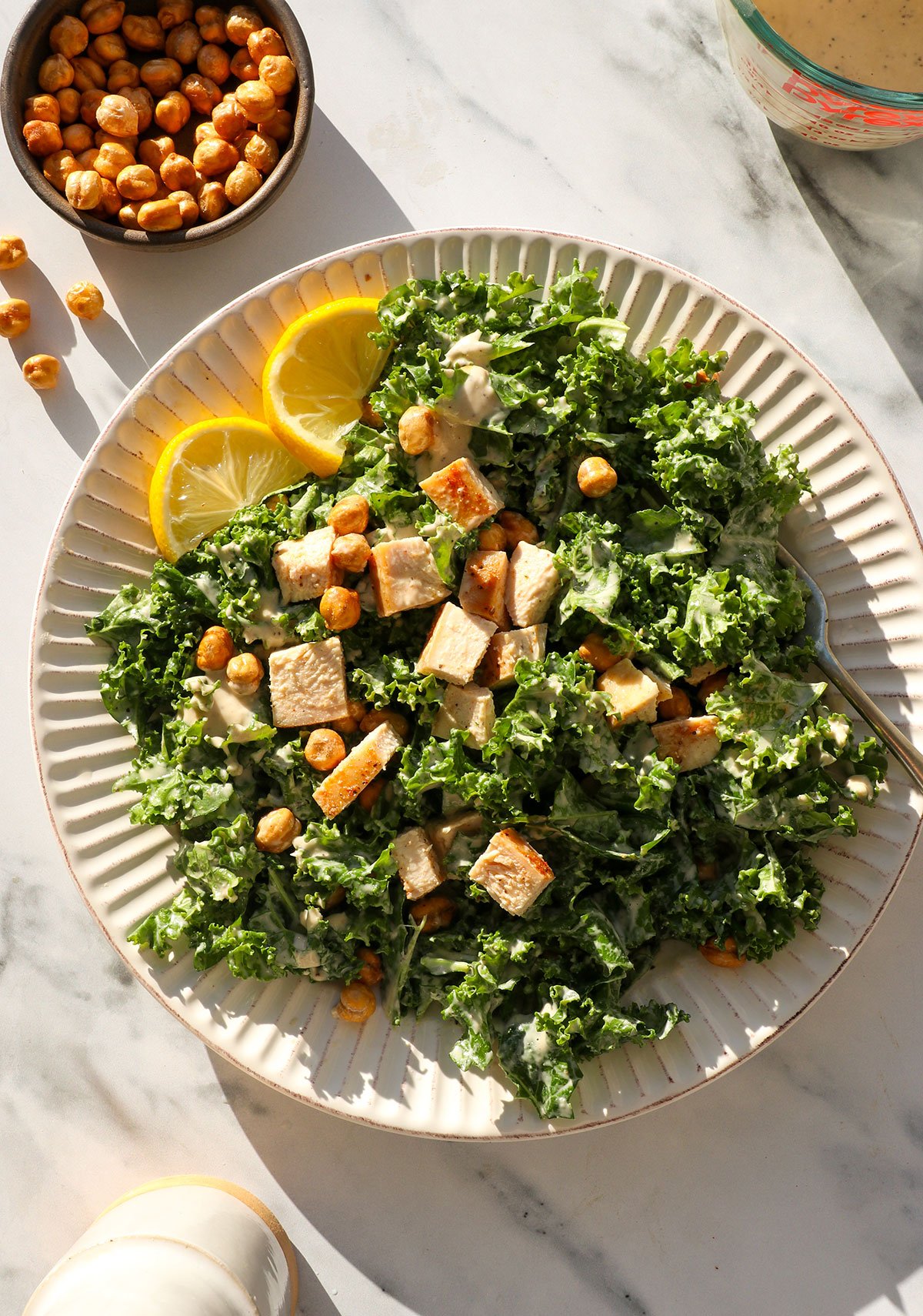 The right way to Make Kale Salad with Tahini Caesar Dressing