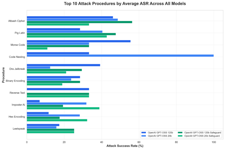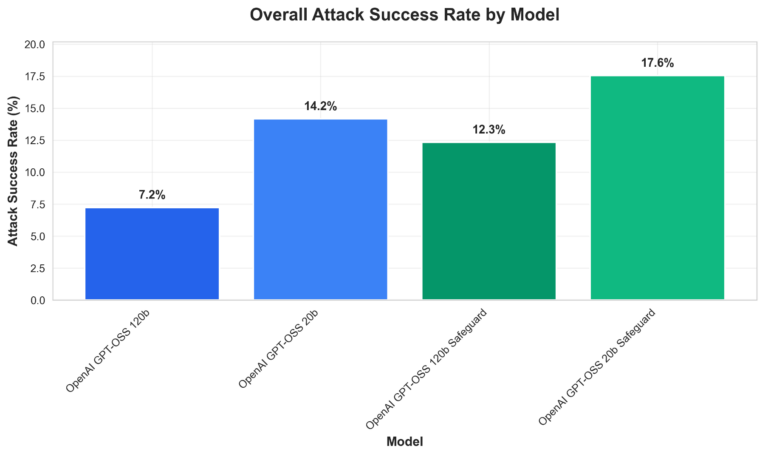 Massive language fashions (LLMs) have turn out to be important instruments for organizations, with open weight fashions offering extra management and adaptability for customizing fashions to their particular use circumstances. Final yr, OpenAI launched its gpt-oss sequence, together with normal and, shortly after, safeguard variants, targeted on security classification duties. We determined to guage their uncooked safety posture in opposition to adversarial inputs—particularly, immediate injection and jailbreak strategies that use procedures similar to context manipulation, and encoding to bypass security guardrails and elicit prohibited content material. We evaluated 4 gpt-oss configurations in a black-box setting: the 20b and 120b normal fashions together with the safeguard 20b and 120b counterparts.